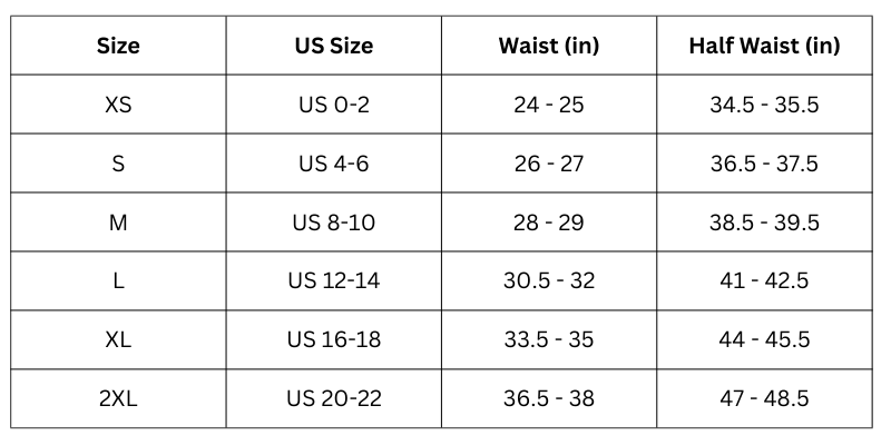 Size Chart (in inches):